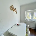 Die 1-Zimmer-Ferienwohnung Renoviertes Monteurhaus In Mendig Fur 6 Personen! verfügt über eine Terrasse und liegt in einer 2 km Entfernung von den Thürer Wiesen. Das Apartment bietet außerdem WLAN und einen private Parkplätze.